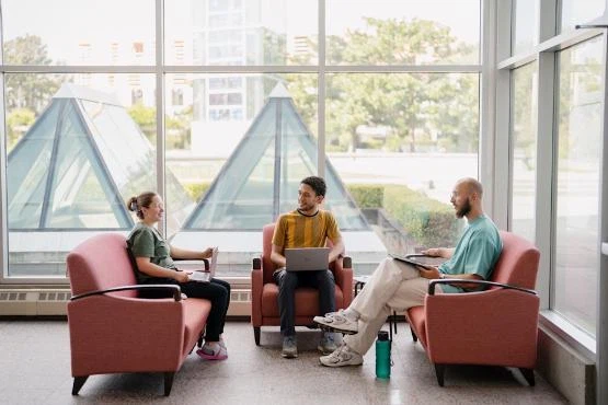 At the centre of our building is the Armerding-Gasque Atrium. In many ways, our Atrium embodies the Regent community. It is an open space where students, faculty, staff, and visitors—including students from UBC and other locals—can congregate, get to know one another on a casual basis, and share conversation over a meal, a coffee break, or even a few class assignments. Glass walls on two sides of this space make for a light-filled seating area that expresses and facilitates the warm hospitality Regent aims to extend to all who enter.